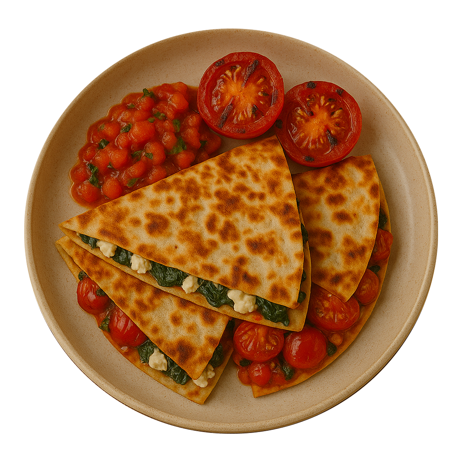 Feta & Spinach Quesadilla, Grilled Tomatoes, Chunky Tomato Salsa (KETO)