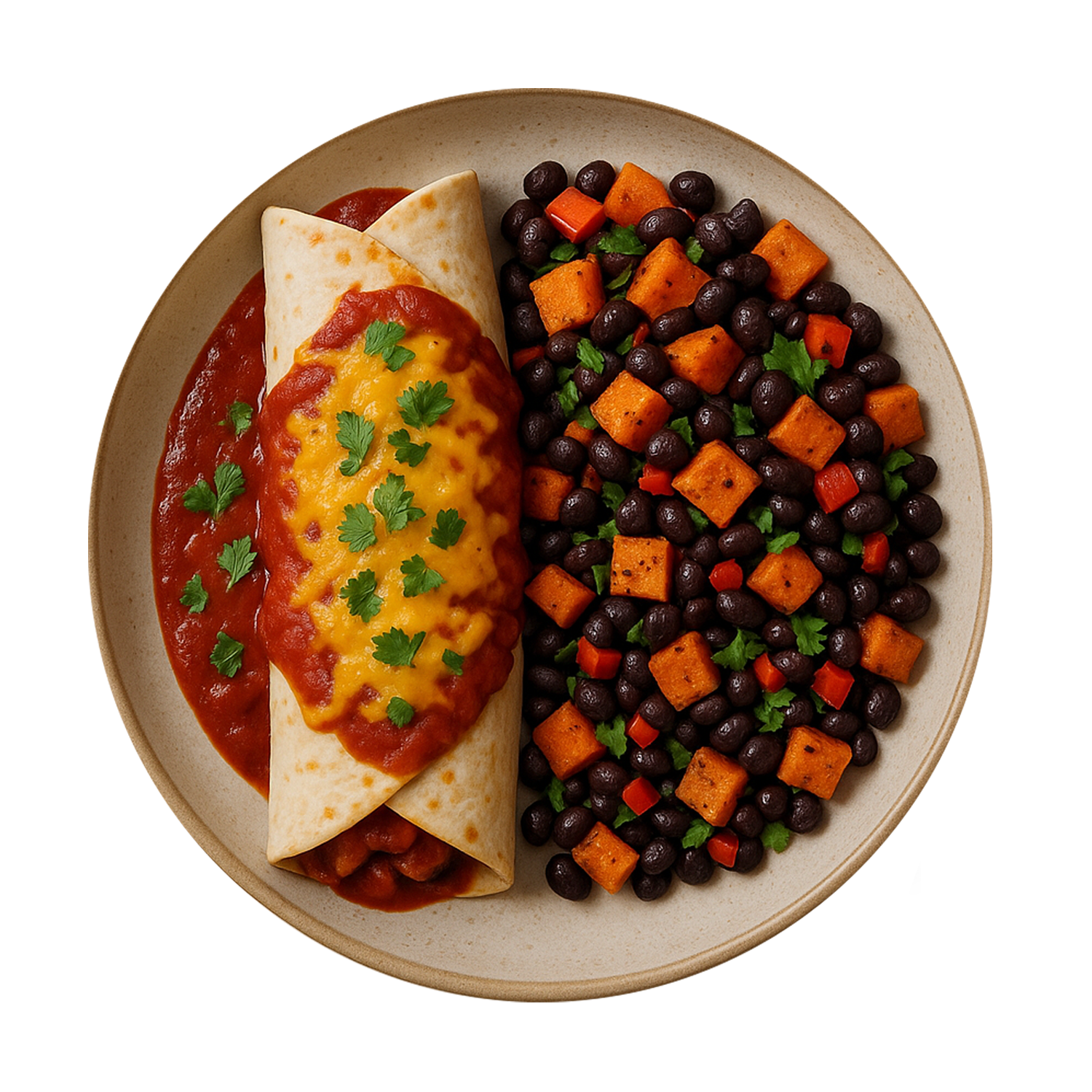 Pulled Jackfruit Enchilada, Sweet Potato & Black Bean Salad
